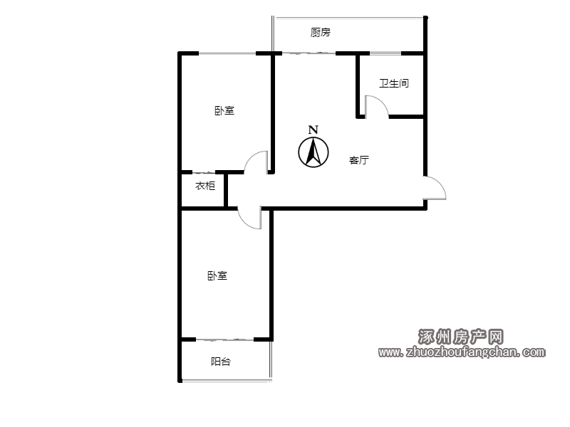 - 房屋戶型2室1廳1衛(wèi)1陽